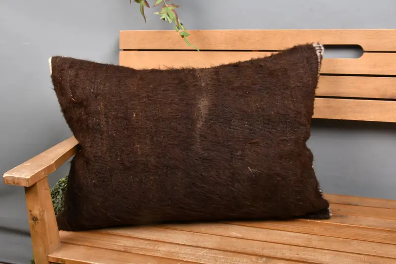 Handmade Southwestern Brown Linen Throw Pillow, 20x28 Embroidered Cushion