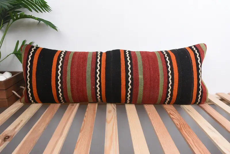 Red & Green Striped Pillow, 12x36 Embroidered Throw Pillow