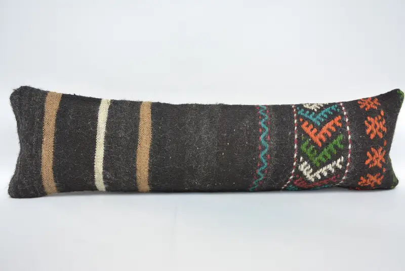 Embroidered Brown & Orange Throw Pillow, Handmade Floral Rectangle Pillow