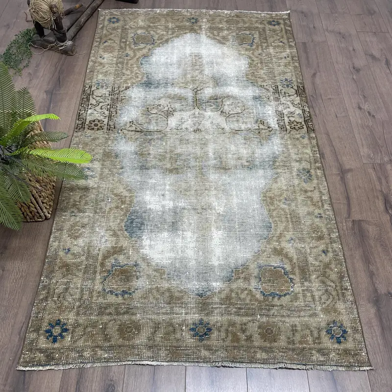 Brown Oriental Rug, 3,6x6,7 ft with Blue Accents