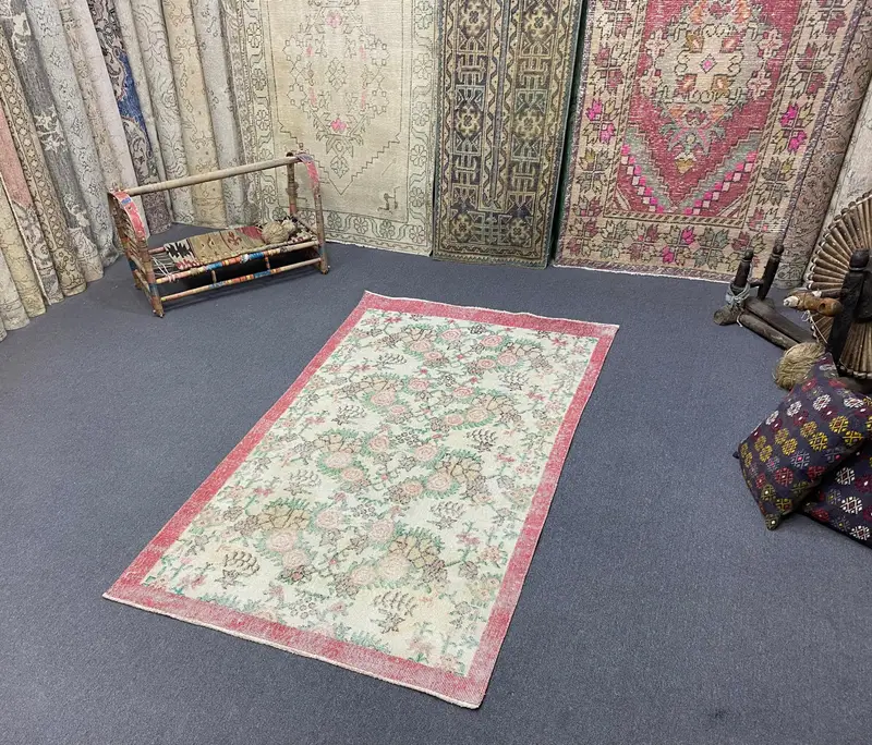 Red and Green Floral Rug, 3.4x6.4 ft Elegant Decor
