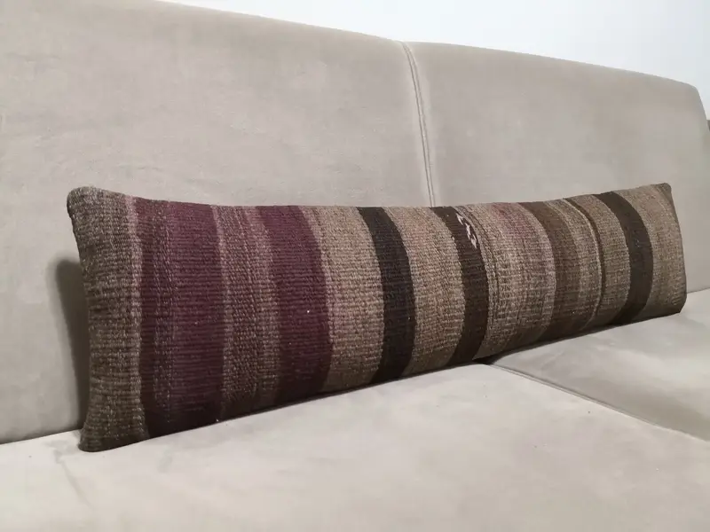 Handmade Striped Wool Throw Pillow, 10x40 Inch Vintage Rectangle Pillow