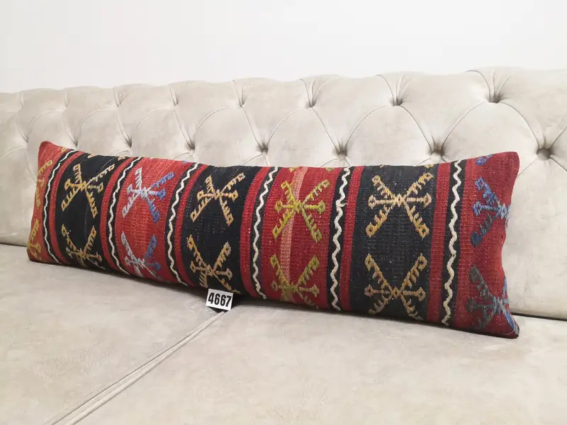 Rectangular Red & Black Striped Wool Pillow, Vintage Throw Pillow
