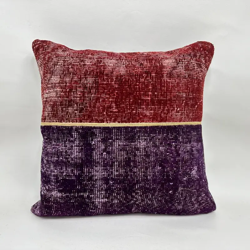 Red & Purple Patchwork Throw Pillow, 24x24 Embroidered Cushion