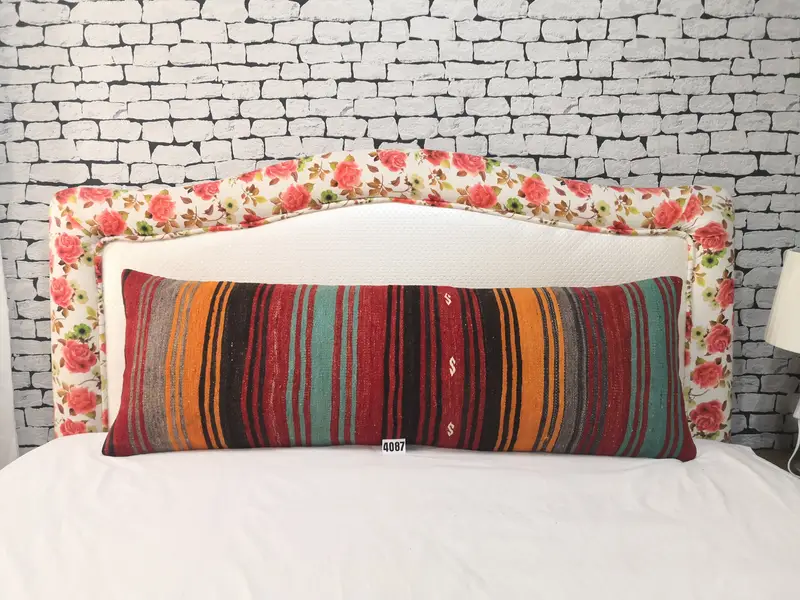 Handmade Striped Wool Throw Pillow, Red and Green Vintage Rectangle Pillow