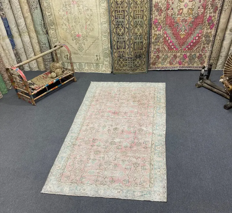Pink and Blue Floral Rug, 3.5x6.9 ft Chic Decor