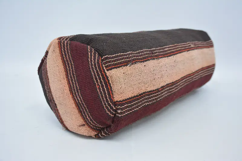 Red & Brown Striped Bolster Throw Pillow, Vintage Embroidered Pillow