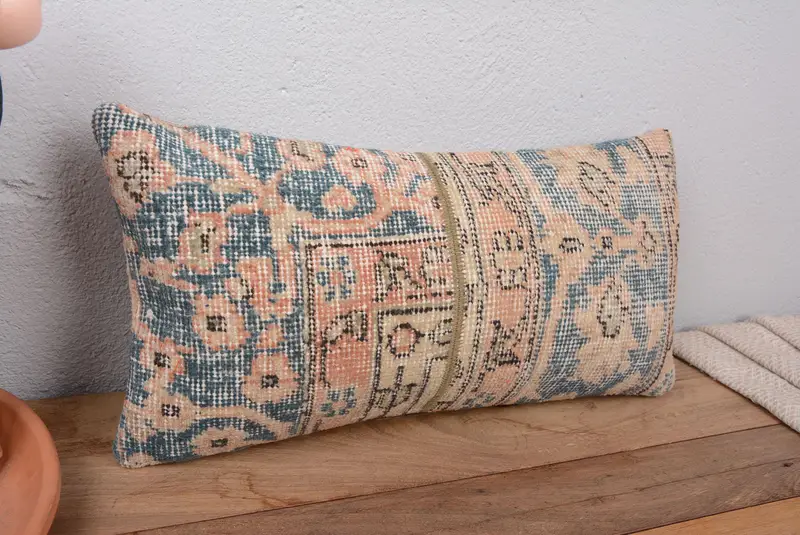 Blue & Orange Patchwork Throw Pillow, Embroidered Vintage Cushion