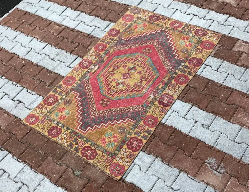 Vibrant Orange & Purple Rug, 3,3x5,6 ft Floral & Geometric
