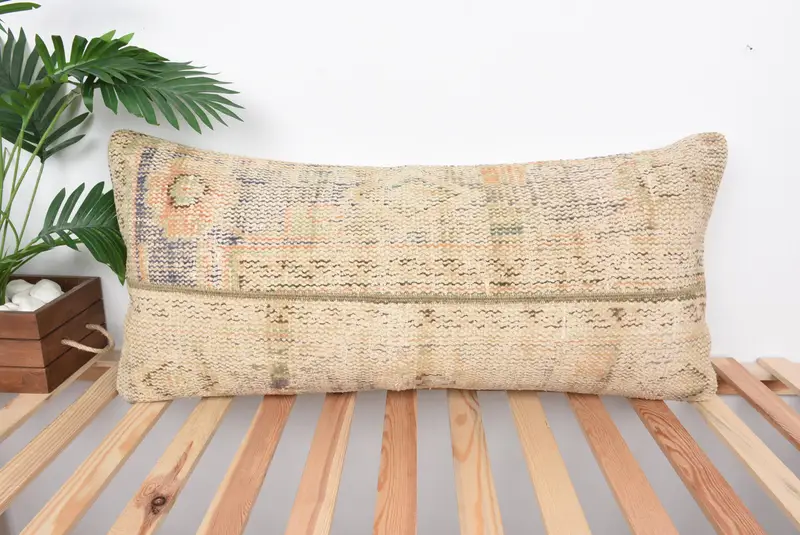 Handmade Orange & Green Patchwork Throw Pillow, 16x36 Vintage Rectangle Pillow