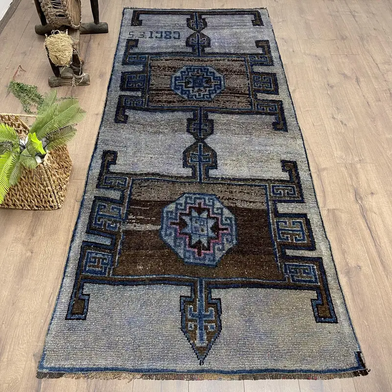 Blue & Brown Polka Dot Rug, 110x265 cm