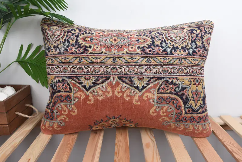 Orange Southwestern Throw Pillow, 16x24 Embroidered Cushion