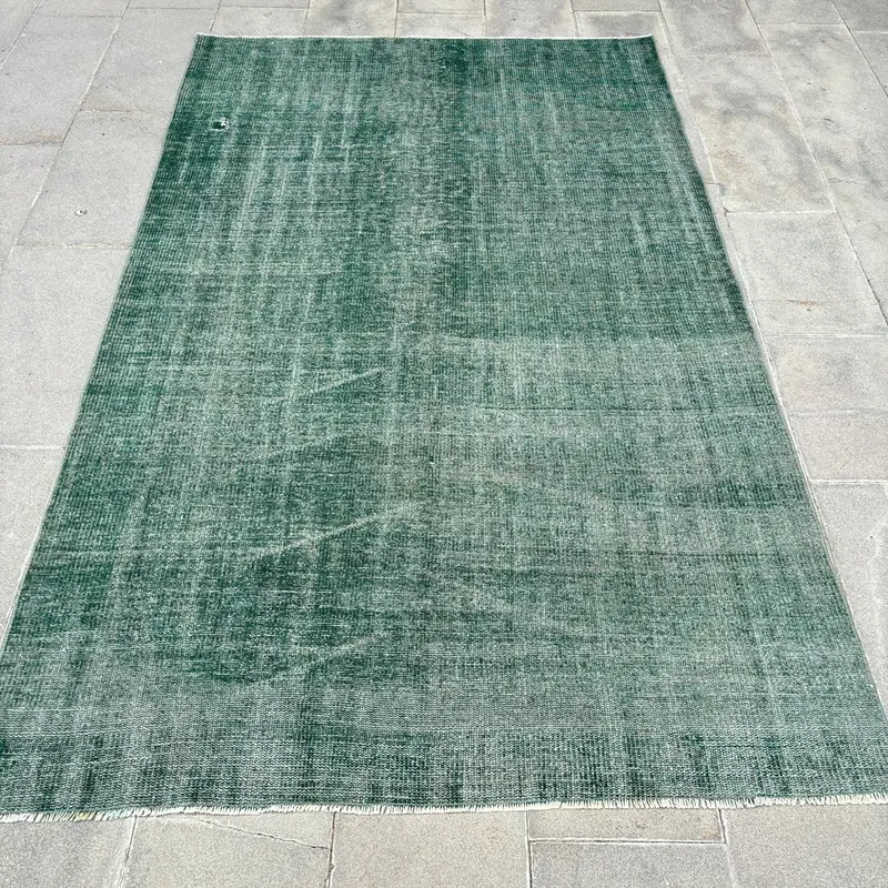 Elegant Green Rug, 4.9x8 ft Striped Geometric Design