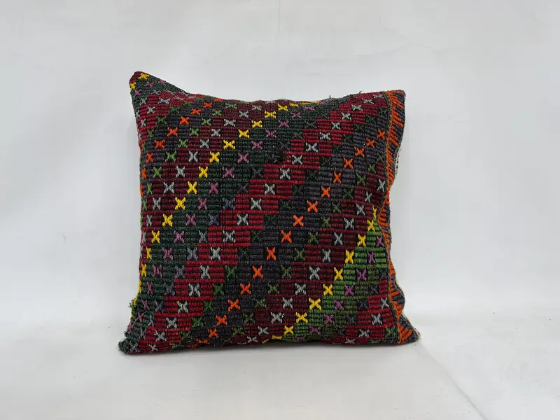 Geometric Green & Orange Throw Pillow, Vintage 32x32 Handmade Cushion