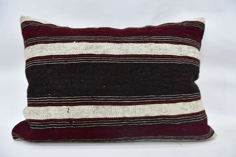 Brown & Beige Striped Throw Pillow, 20x28 Embroidered Pillow