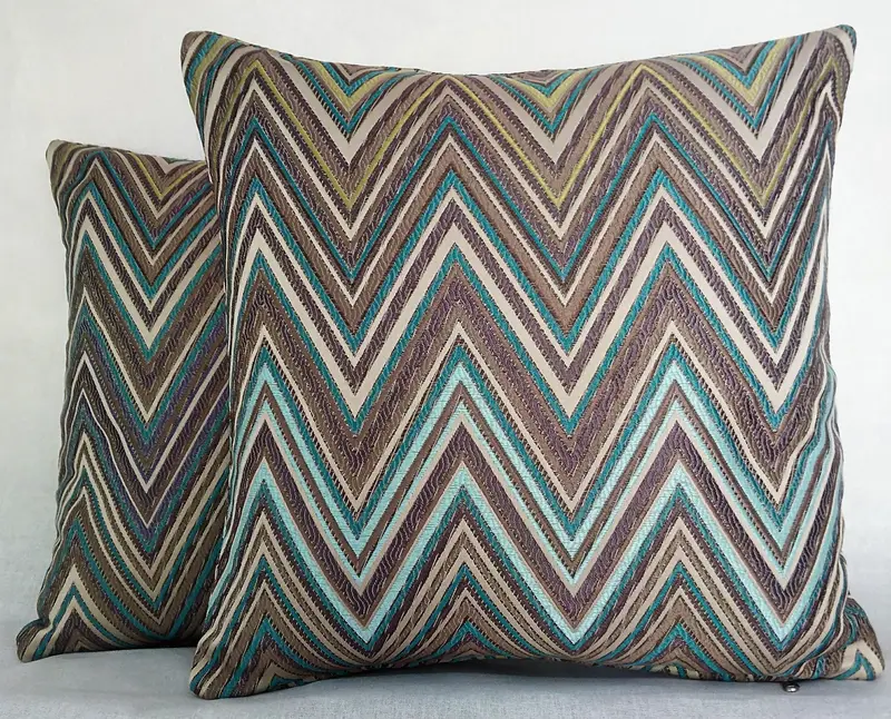 Handmade Striped Blue & Purple Throw Pillow, Embroidered Vintage Square Pillow
