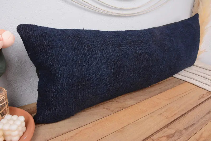 Blue Southwestern Embroidered Pillow, Vintage Rectangle Throw Pillow