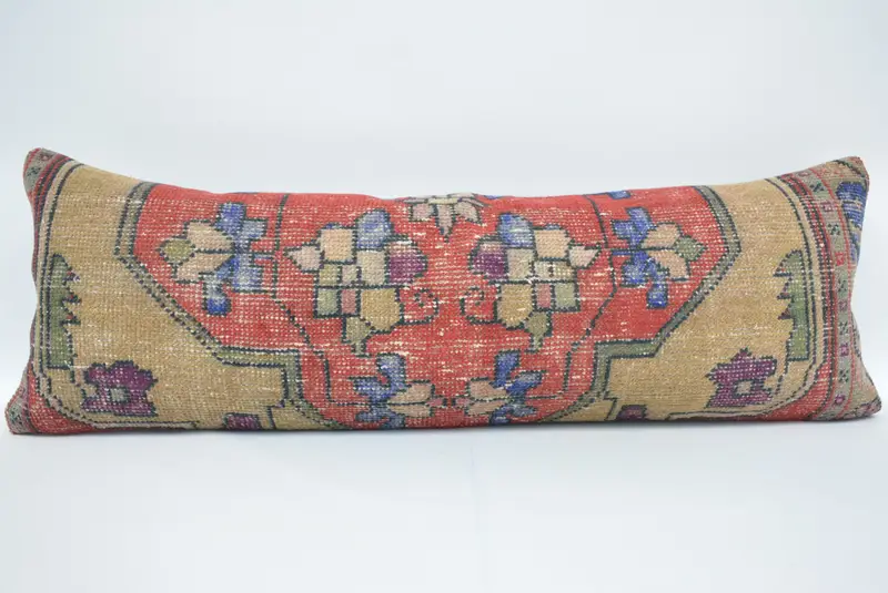 Red & Bronze 16x48 Hemp Throw Pillow, Embroidered Patchwork Cushion