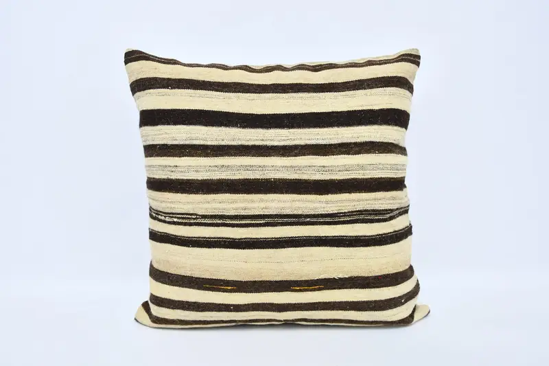 Beige & Brown Striped Throw Pillow, Versatile 28x28 Pillow