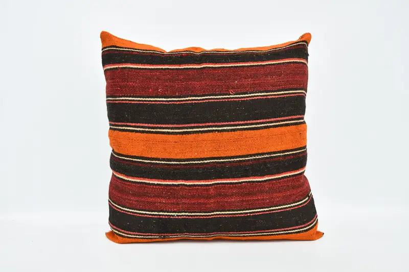 Red & Orange Striped Throw Pillow, 32x32 Vintage Hemp Pillow