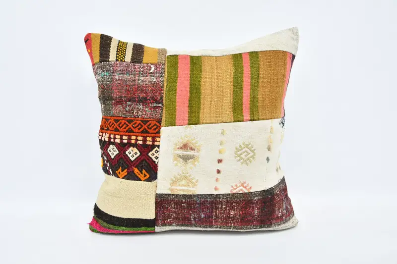 24x24 Embroidered Throw Pillow, Vintage Check Pattern Cushion