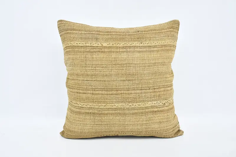 Beige & Brown Striped Cushion, 24x24 Embroidered Throw Pillow