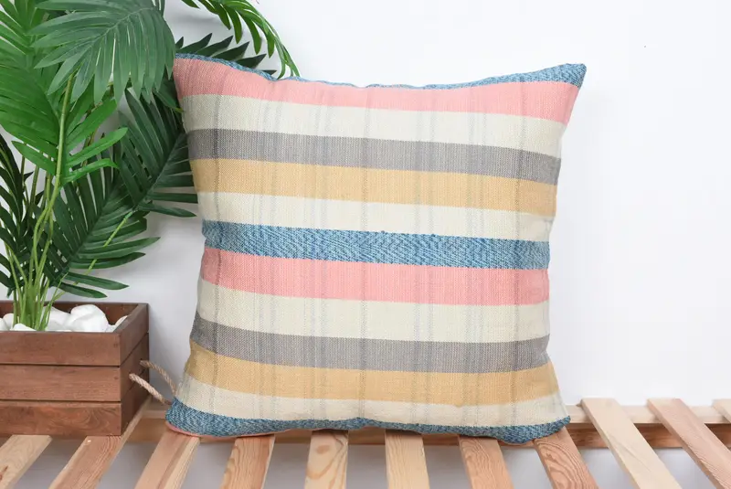 Pink & Green Striped Throw Pillow, Vintage Embroidered Cushion