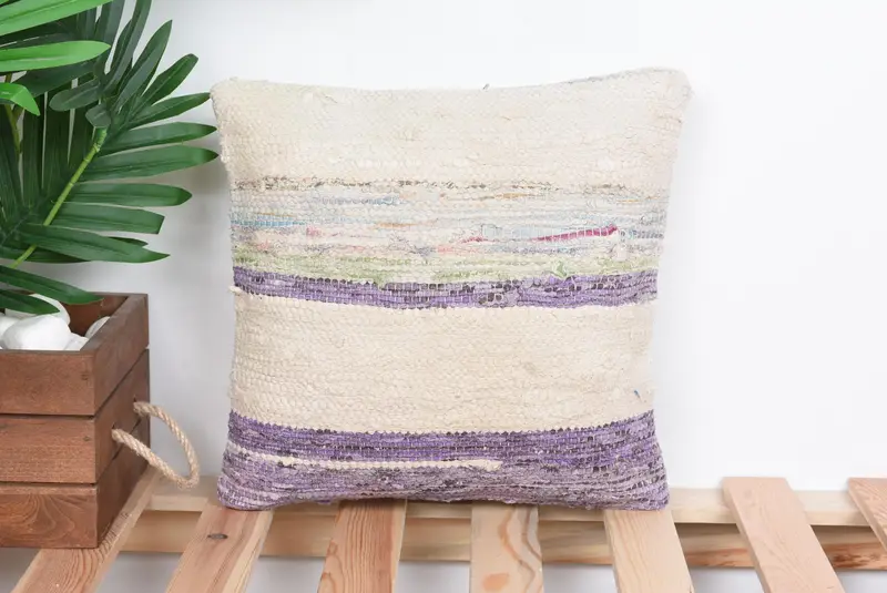 Embroidered Striped Pillow, 12x12 Vintage Throw Pillow