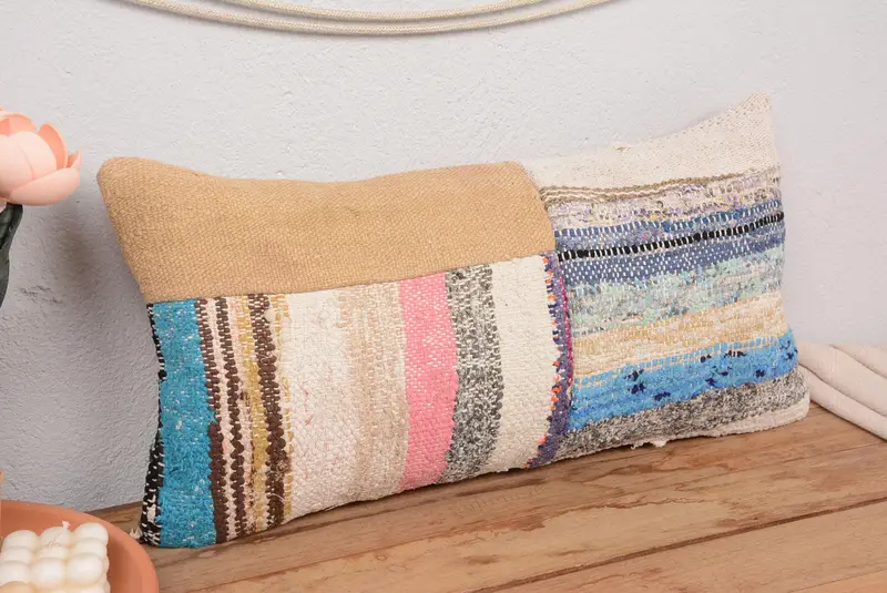 Handmade Beige & Bronze Patchwork Pillow, 12x24 Vintage Throw Pillow