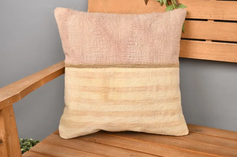 Beige, Bronze Patchwork Throw Pillow, 16x16 Embroidered Cushion