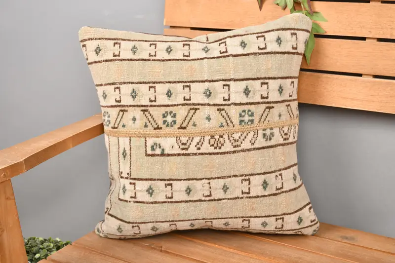Beige & Brown Patchwork Throw Pillow, 16x16 Embroidered Cushion