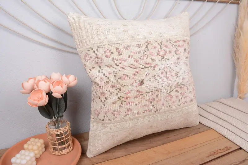 Beige Southwestern Throw Pillow, 24x24 Embroidered Cushion
