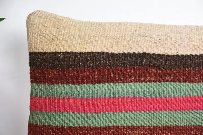Handmade Beige & Brown Striped Linen Pillow, Vintage Rectangle Throw Pillow
