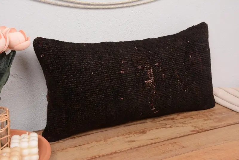 Handmade Southwestern Brown Linen Throw Pillow, 12x24 Embroidered Cushion