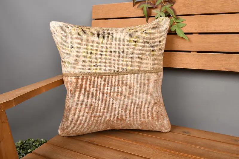 Orange & Brown Patchwork Throw Pillow, 16x16 Embroidered Pillow