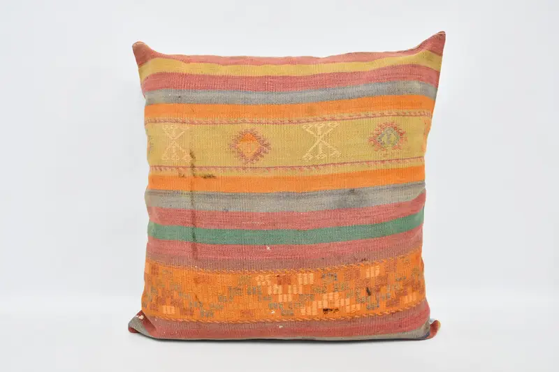 Orange & Red Embroidered Throw Pillow, 32x32 Vintage Pillow