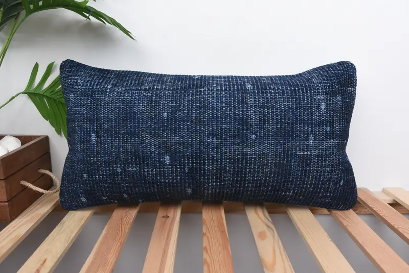 Blue Southwestern Embroidered Throw Pillow, Vintage 12x24 Pillow
