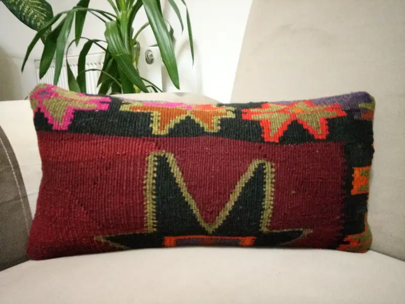 Handmade Wool Throw Pillow, Black & Green Geometric Vintage Rectangle Pillow