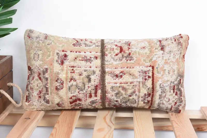 Geometric Beige & Red Rectangle Throw Pillow, Versatile Linen Pillow