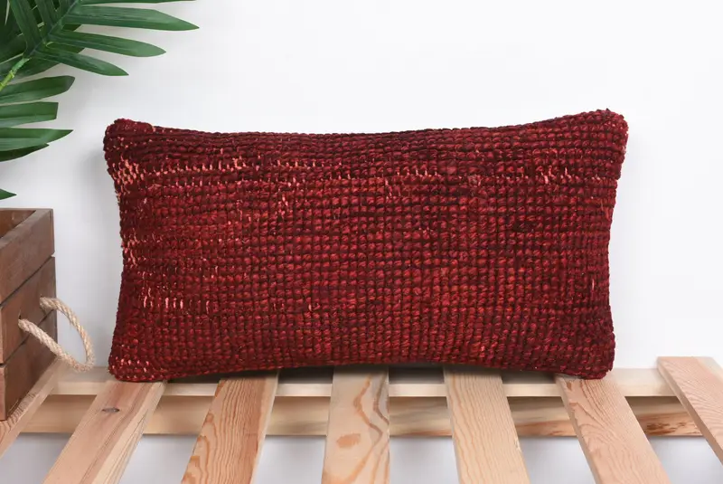 Handmade Southwestern Red Throw Pillow, 8x16 Embroidered Vintage Pillow