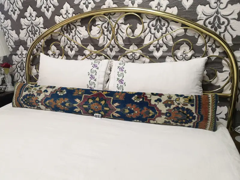 Handmade Wool Throw Pillow, Blue & Brown Geometric Vintage Cushion