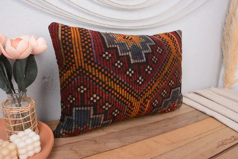Red Southwestern Pillow with Bronze Accents, 16x24 Embroidered Throw Pillow