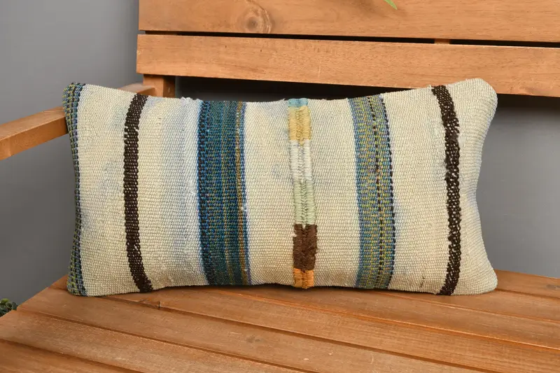 Beige & Bronze Striped Pillow, Embroidered Vintage Throw Pillow
