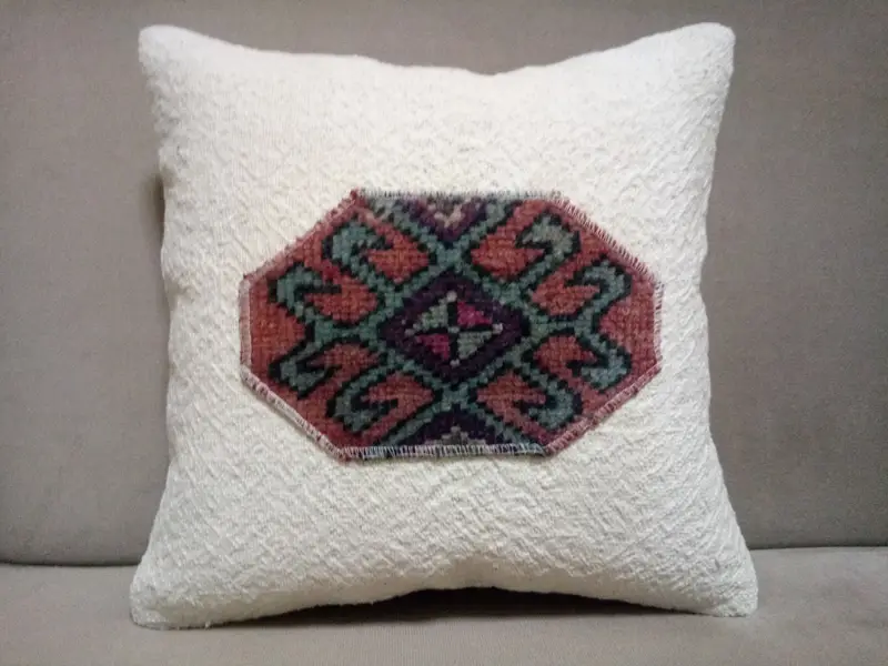 Handmade Wool Throw Pillow, Embroidered Abstract Design Throw Pillow