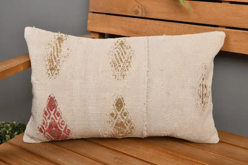 Embroidered Southwestern Beige & Brown Pillow, 12x20 Handmade Throw Pillow