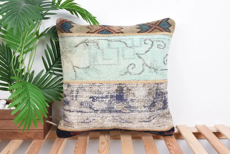 Green & Bronze Patchwork Throw Pillow, 20x20 Embroidered Cushion