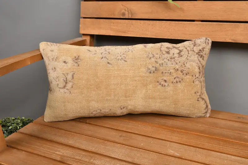 Orange & Brown Floral Linen Throw Pillow, Handmade Vintage Cushion