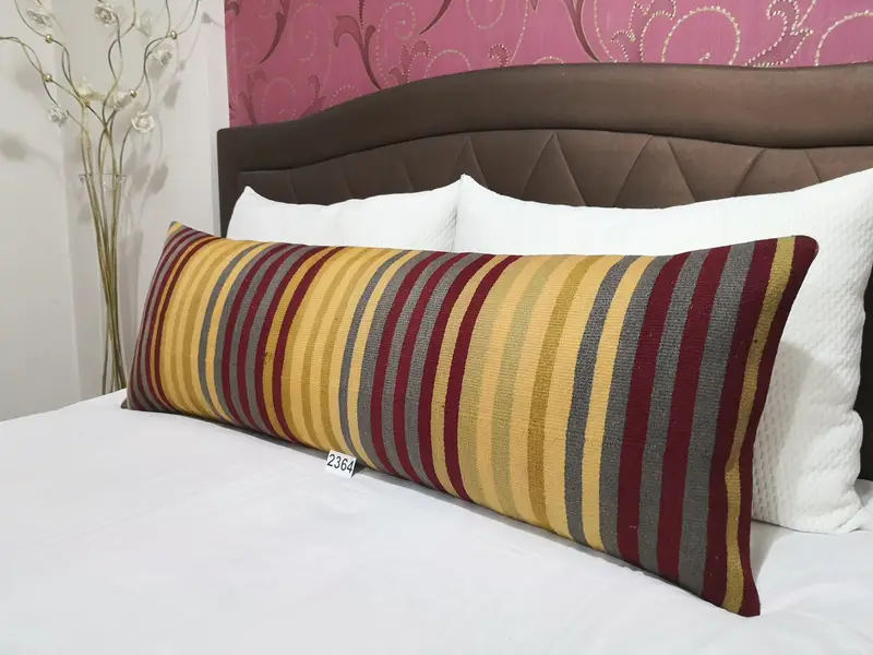 Rectangular Red & Bronze Striped Wool Throw Pillow, Handmade Decorative Pillow