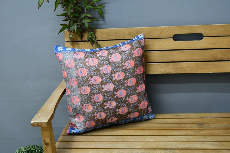 Red Southwestern Embroidered Throw Pillow, Vintage Square Pillow