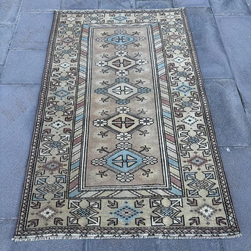 3,4x5,4 ft Southwestern Rug, Beige & Brown Accent